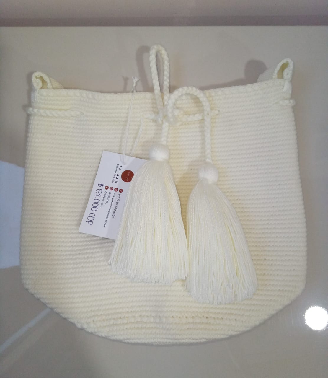 Técnica: Elaborada 100% a mano por artesanas de la comunidad Wayuu, utilizando la técnica tradicional de ganchillo.
